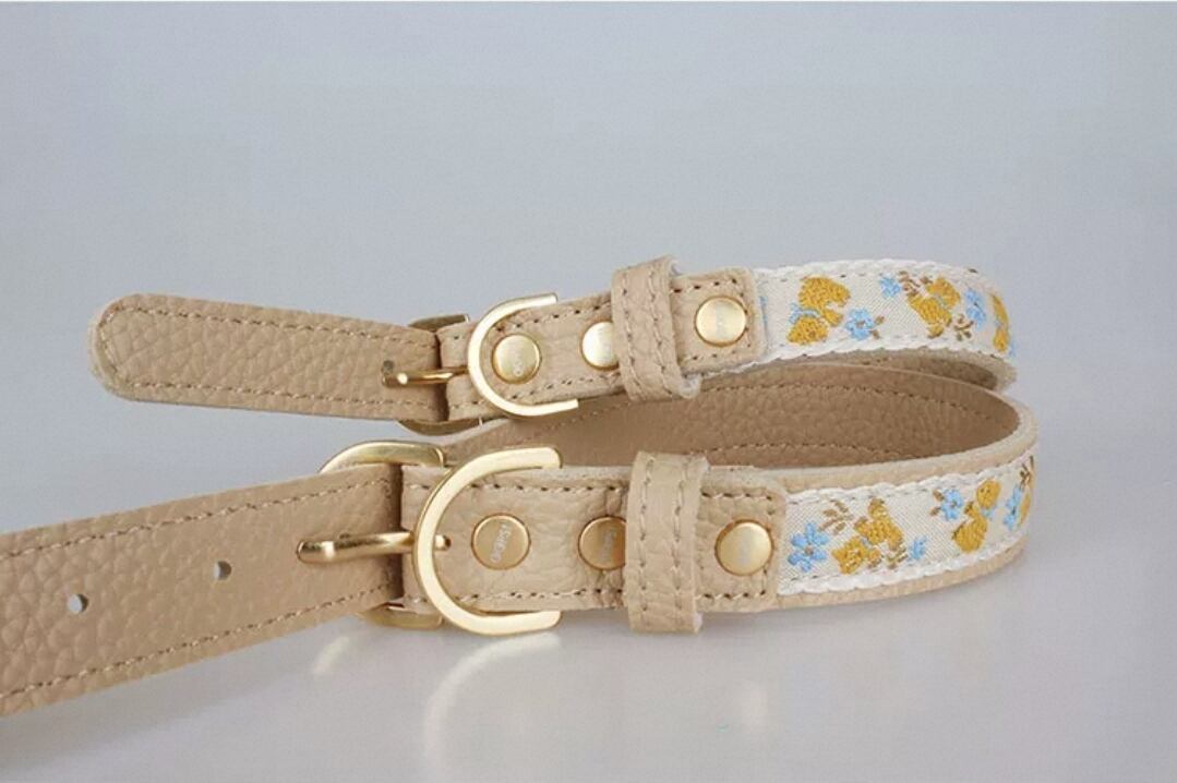 繊細な刺繍で描かれた、やさしい雰囲気のブルーミングフラワー首輪。